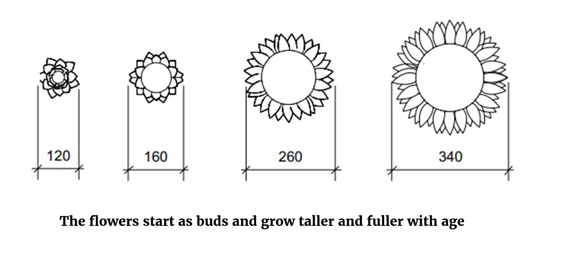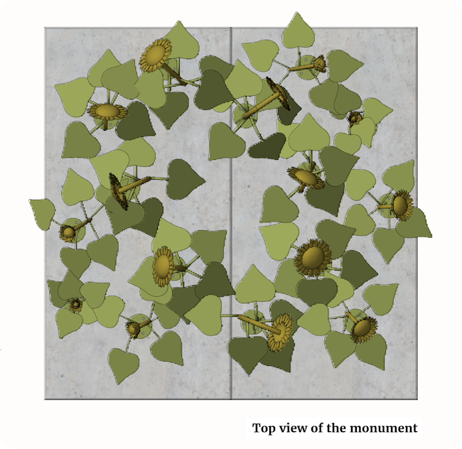 The age of each victim is reflected in the height and form of the flowers: a bud represents a child, a flower in full bloom symbolizes an adult.